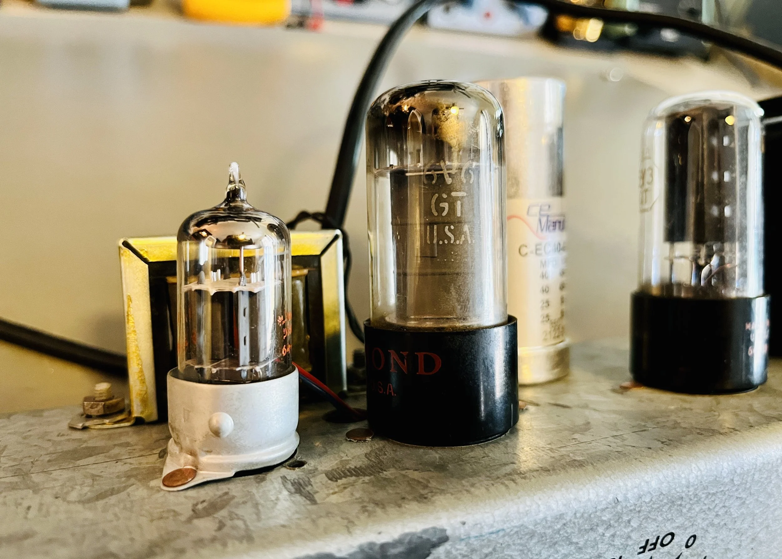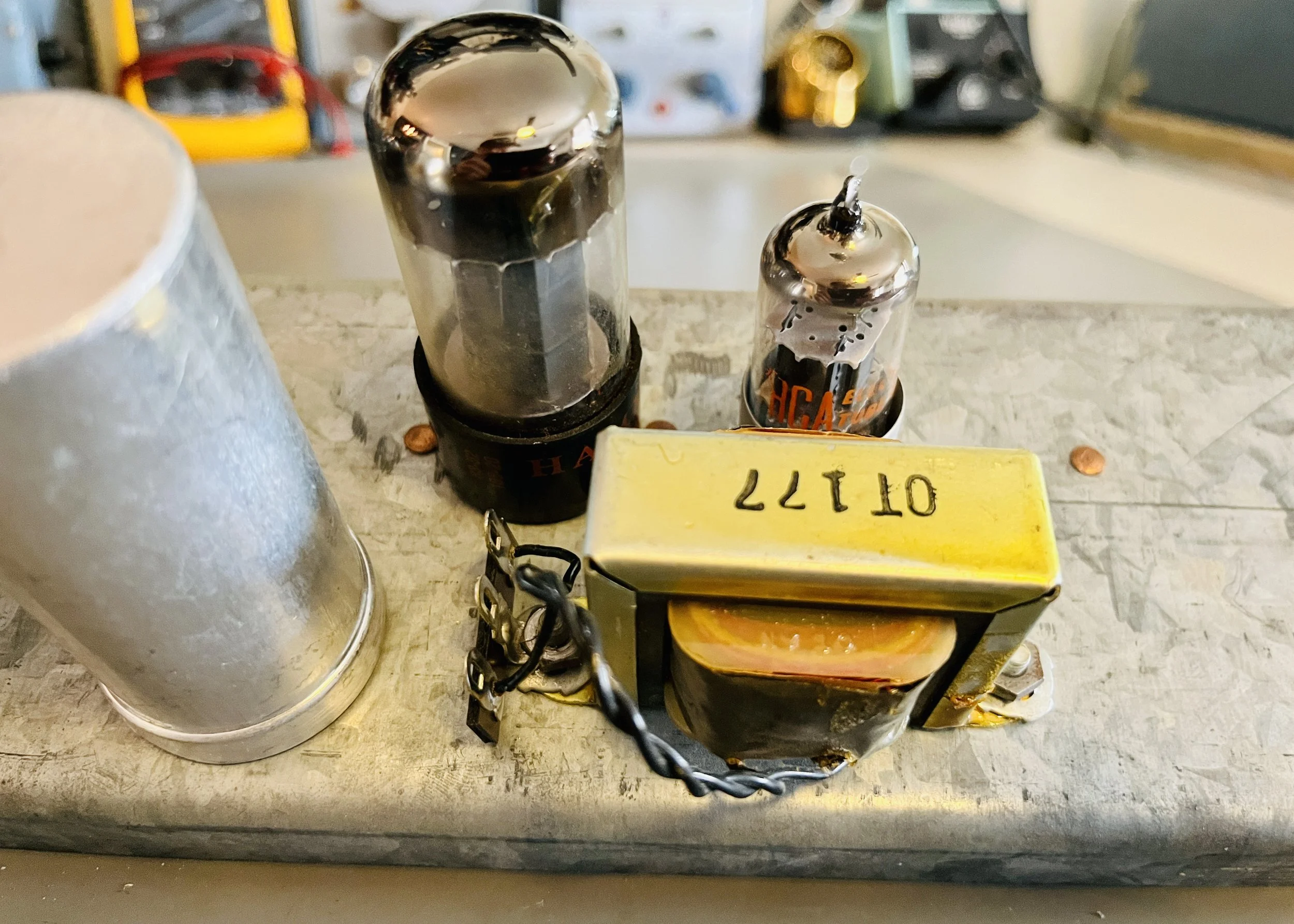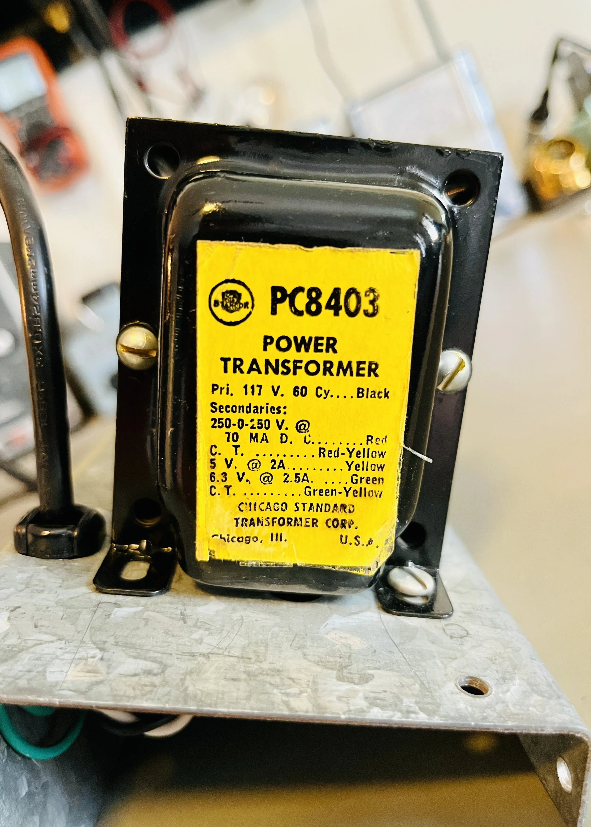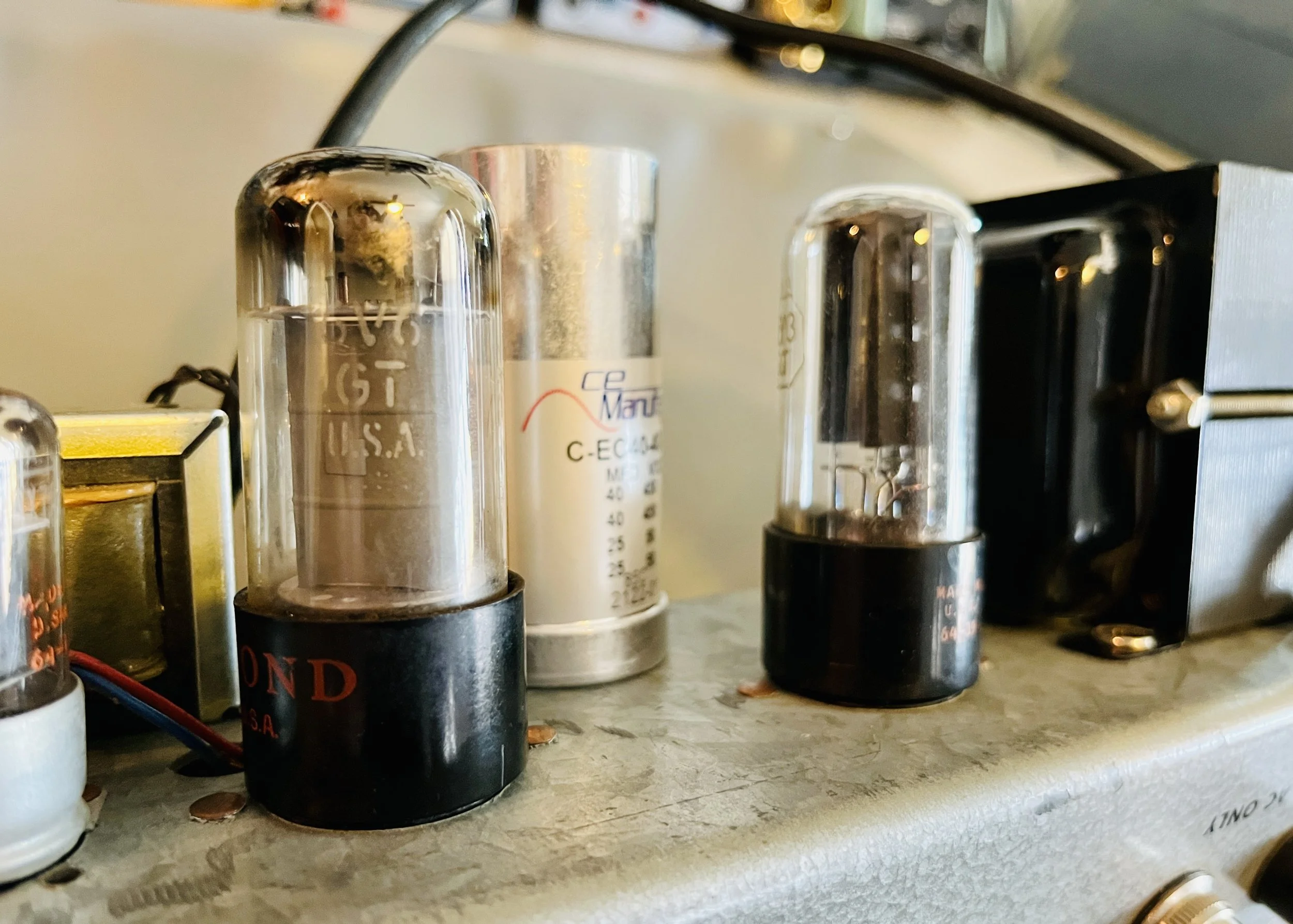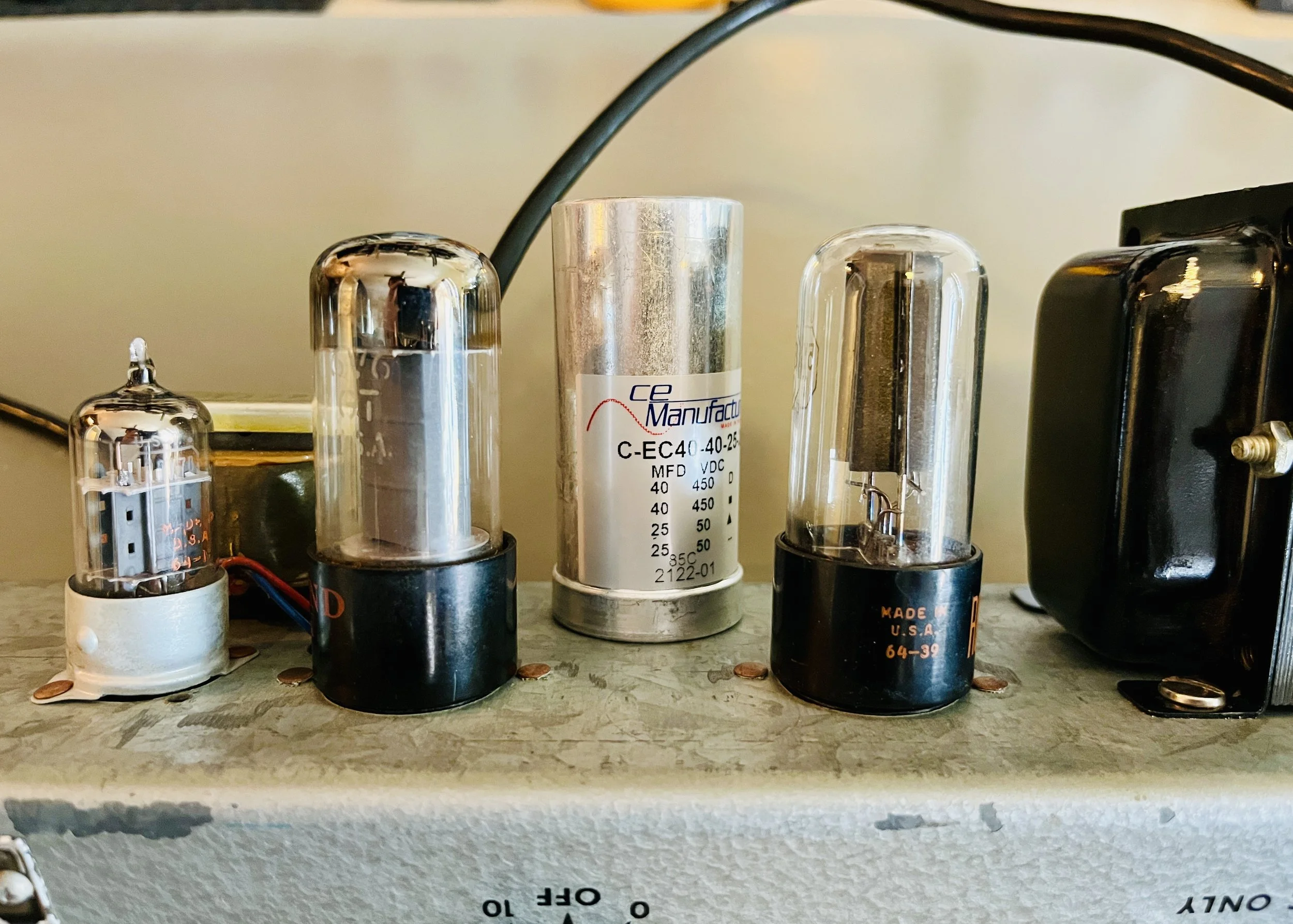 The original RCA 12AX7 and RCA 5Y3 tested great and were kept in place. For the 6V6 power tube I pulled out a period correct NOS RCA 6V6GT (Hammond Organ Reprint) type unit from my stash as it was perfect for this amp. Final tube lineup: V1 = RCA 12AX7, V2 = NOS RCA 6V6GT (Hammond Organ Reprint), V3 = RCA 5Y3. The Cathode Bias was adjusted and cooled down to bring the Plate Dissipation to a conservative %80 with a B+ of 310 VDC. The cool bias is a bit off the cuff for me but it just sounded right for this amp.