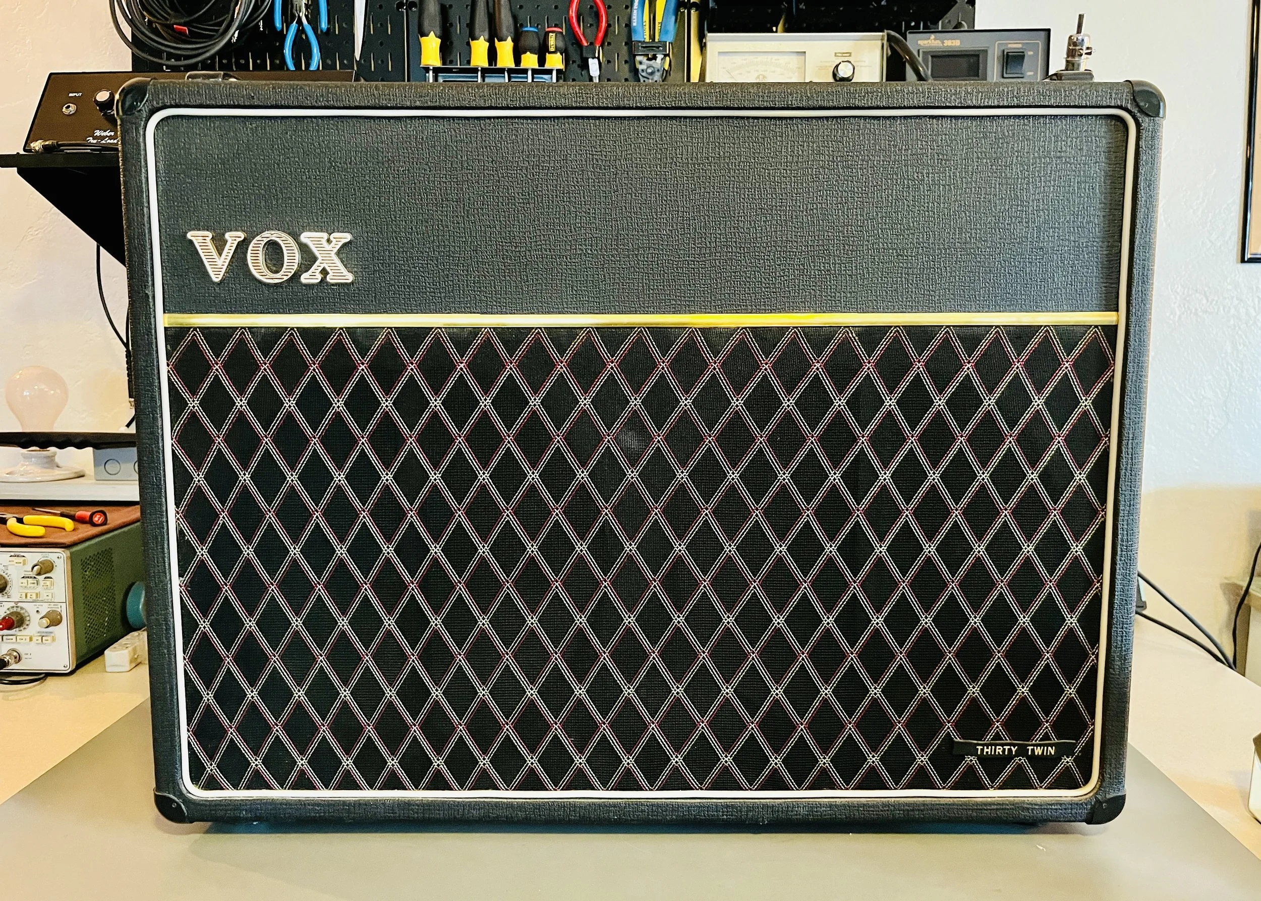This is one collectible and fantastic sounding British made amp. The Vox AC30 is an iconic sounding piece of gear and this particular version is the “Treble” edition. Vox at this time released the AC30 in “Bass”, “Normal”, “Treble”, and the higher gain “Top Boost” editions - with each voiced respectively to accentuate certain frequencies. This was done through the use of different value coupling and peaking capacitors mostly in the front end of the preamp. These amps have the incredible phase shift vibrato and amplitude modulation tremolo circuits lifted directly from the Wurlitzer console organs of the era.
