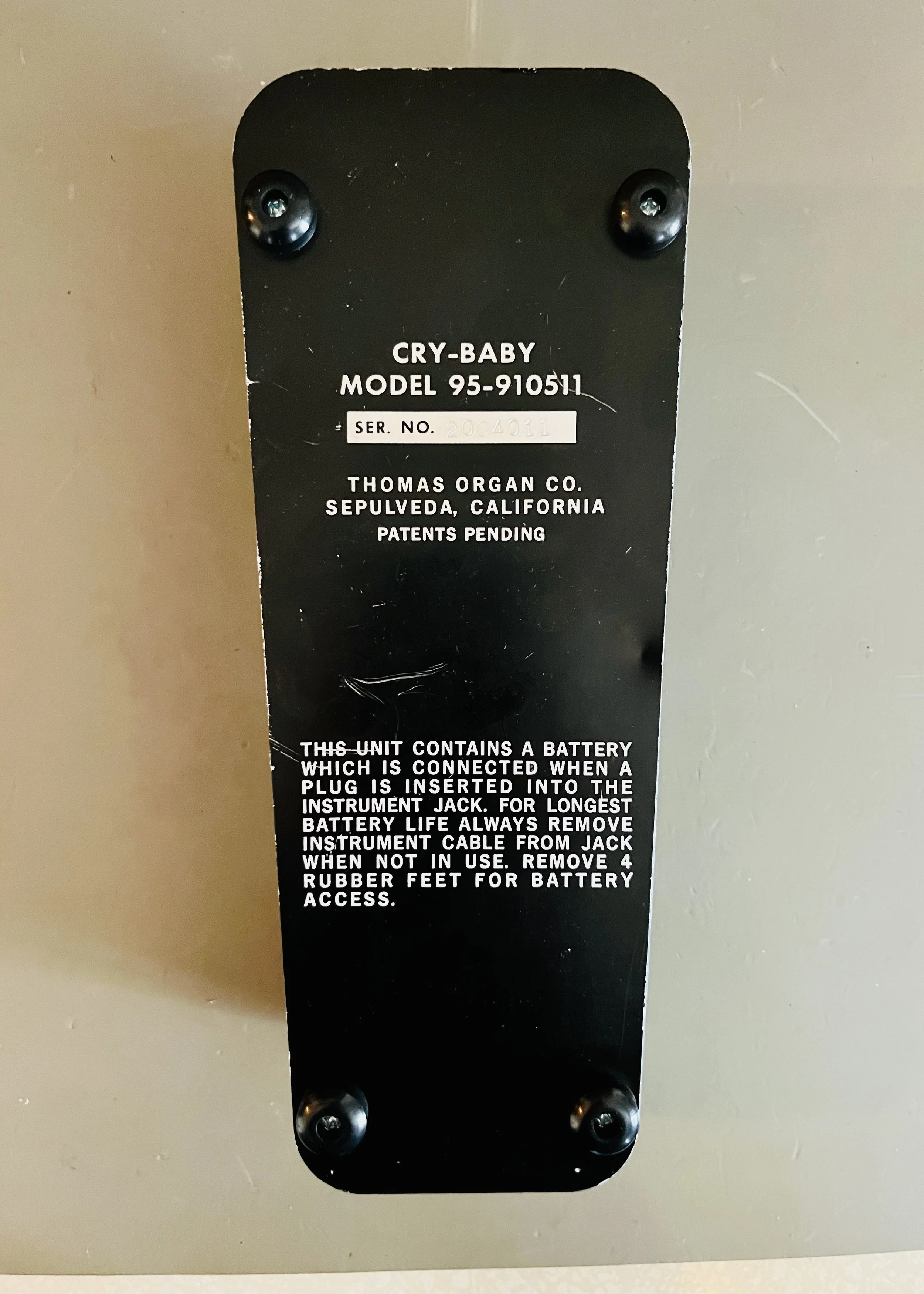 The Cry Baby Wah was first introduced in 1967 and manufactured at the Thomas factory in Sepulveda CA. Later that year production was moved to EME (Eko) in Italy. Production would eventually move back to the USA in the mid 1970’s and then later on in the early 1980’s the whole thing was bought out by Dunlop who continues to make them today. Aside from aesthetics, the Crybaby was a virtual clone of the Vox V846 Wah-Wah - originally named the Clyde McCoy Wah-Wah. Wah pedals were intended to be effects that were used exclusively by Brass and Woodwind players - to mimic the already used mechanical wah effect that trumpeters like Clyde McCoy (the original sponsor/namesake of the pedal) were famous for. As Vox recognized that the true sales potential for the Vox wah was for guitar, they dropped their association with Clyde McCoy and renamed the pedal the V846 Vox Wah-Wah. Thomas provided the V846 Vox Wah to their authorized Vox dealers while offering the virtually identical Cry Baby to all other music shops. The original pedals were popularized by guitarists such as Jimi Hendrix, Eric Clapton, and David Gilmour.
