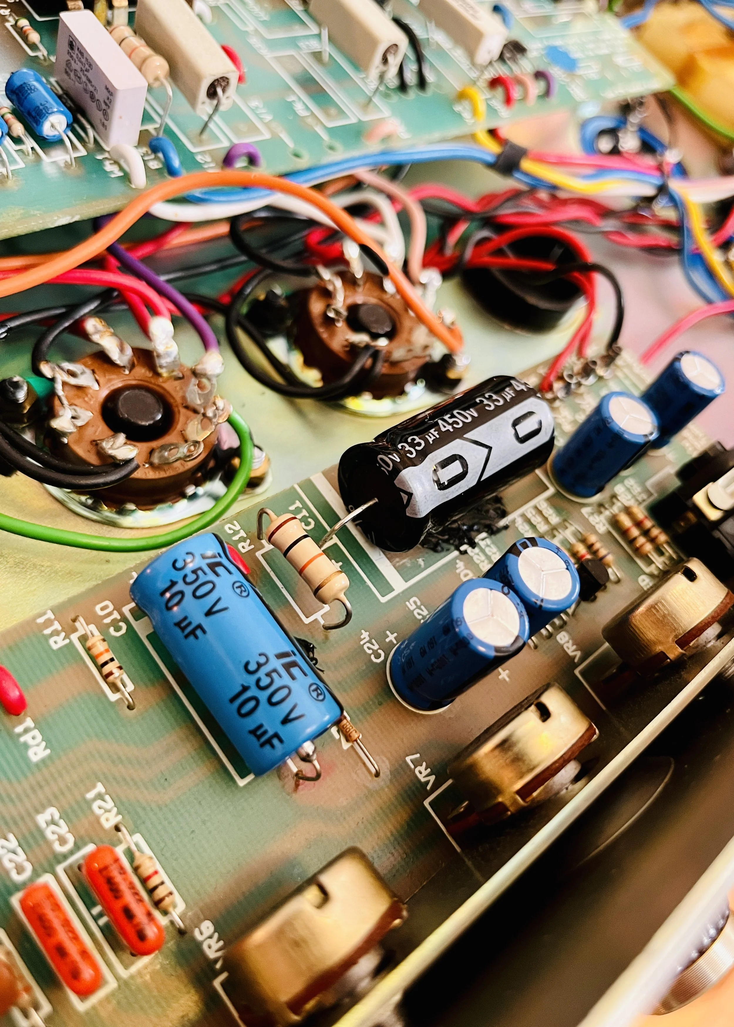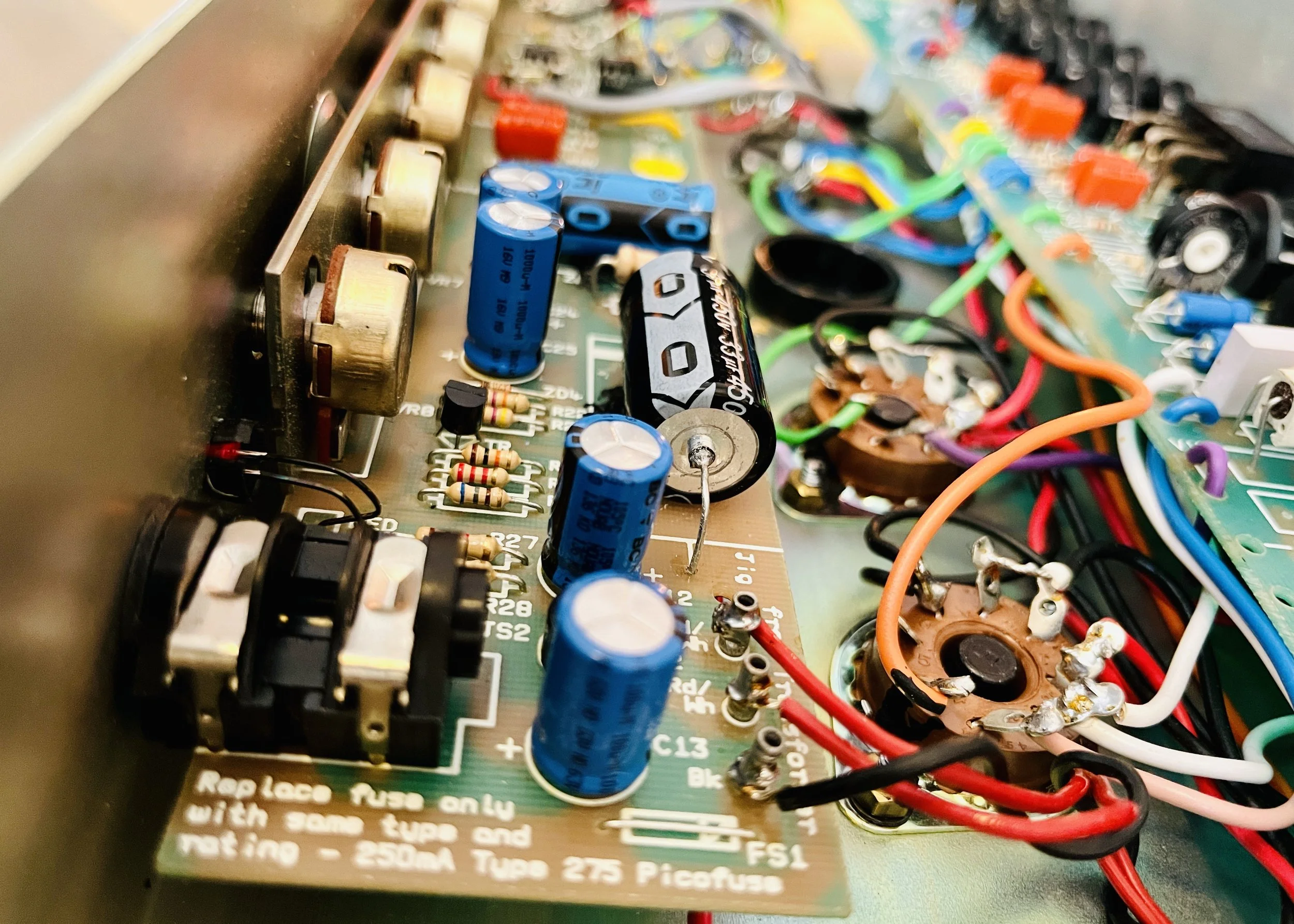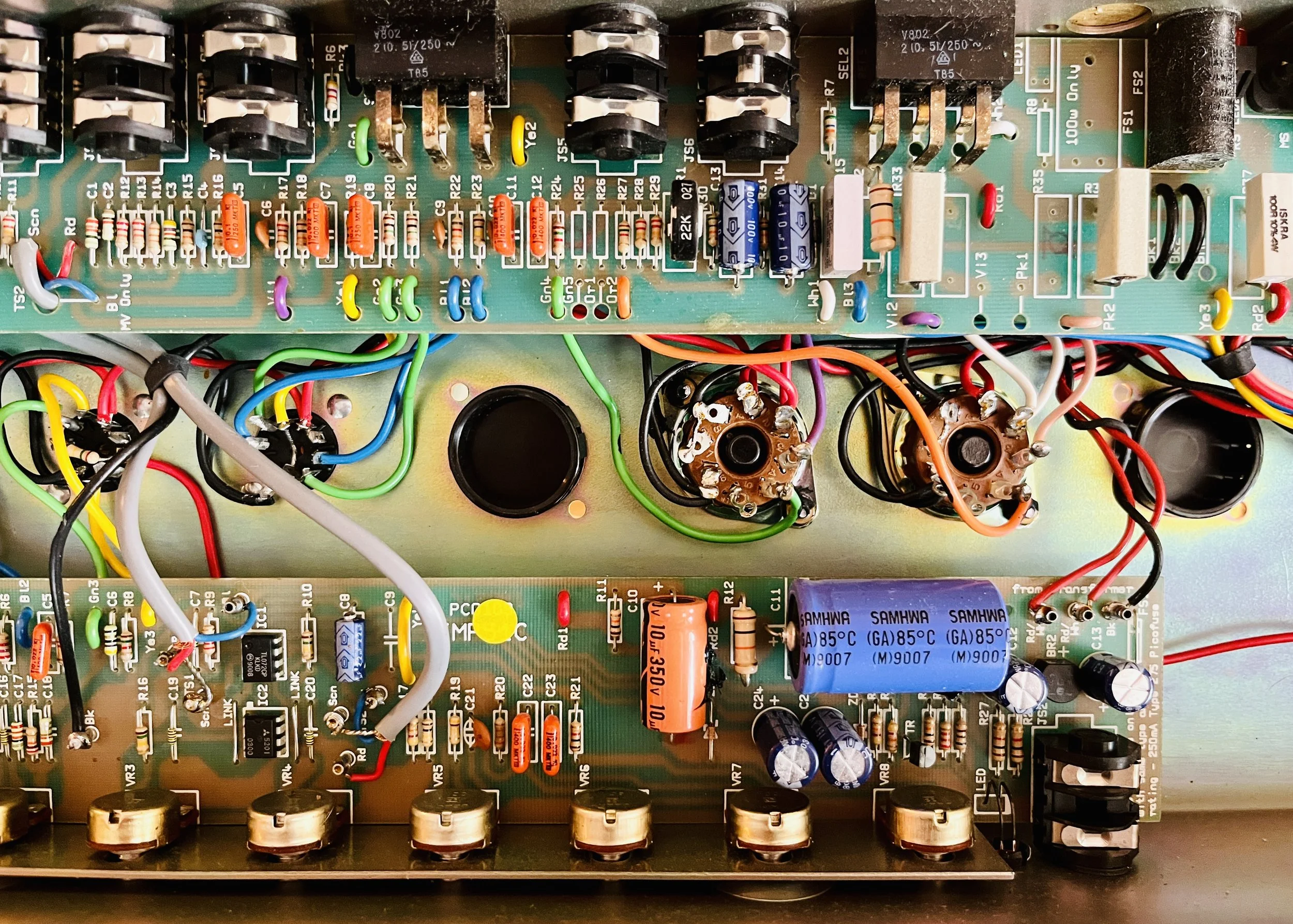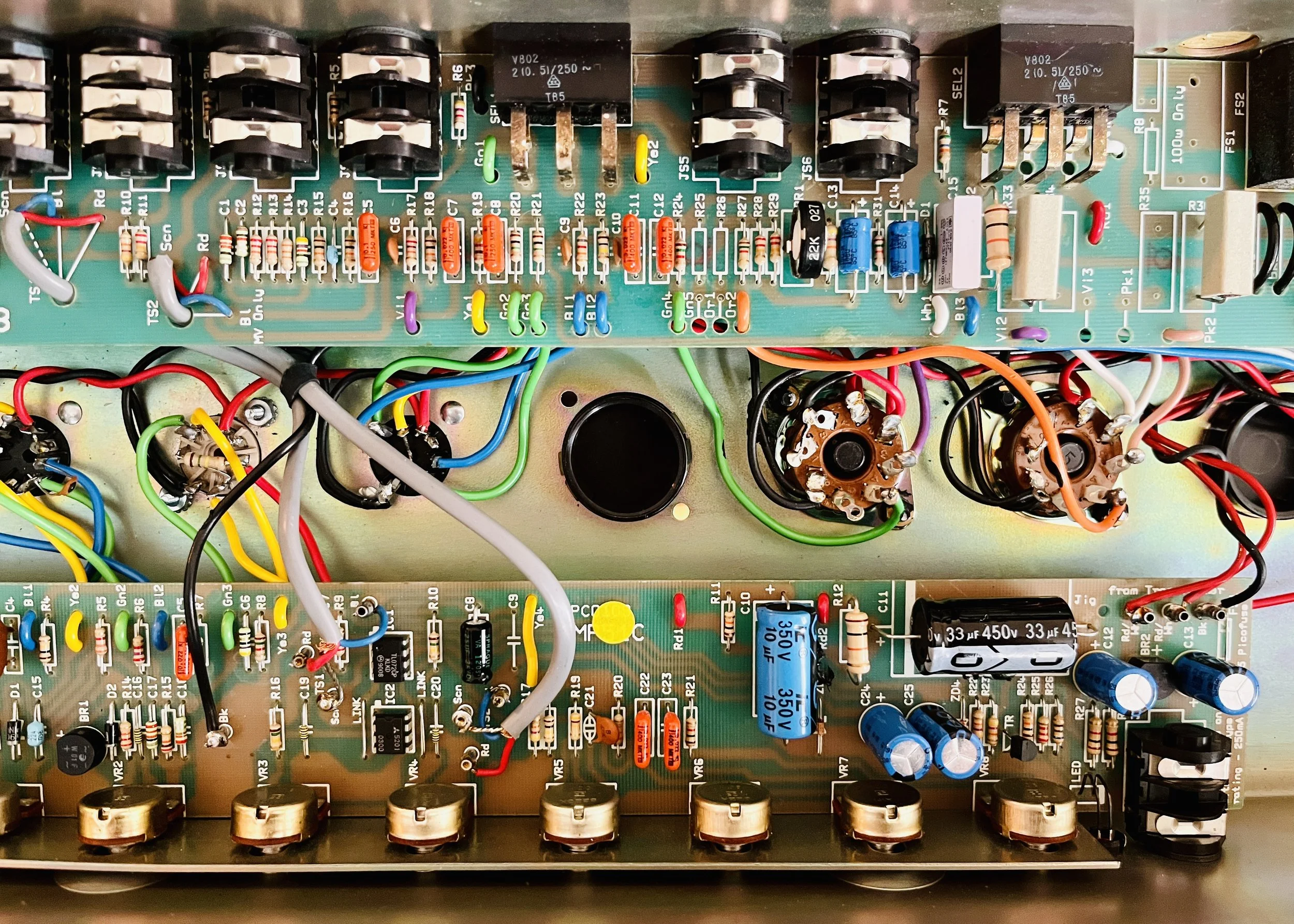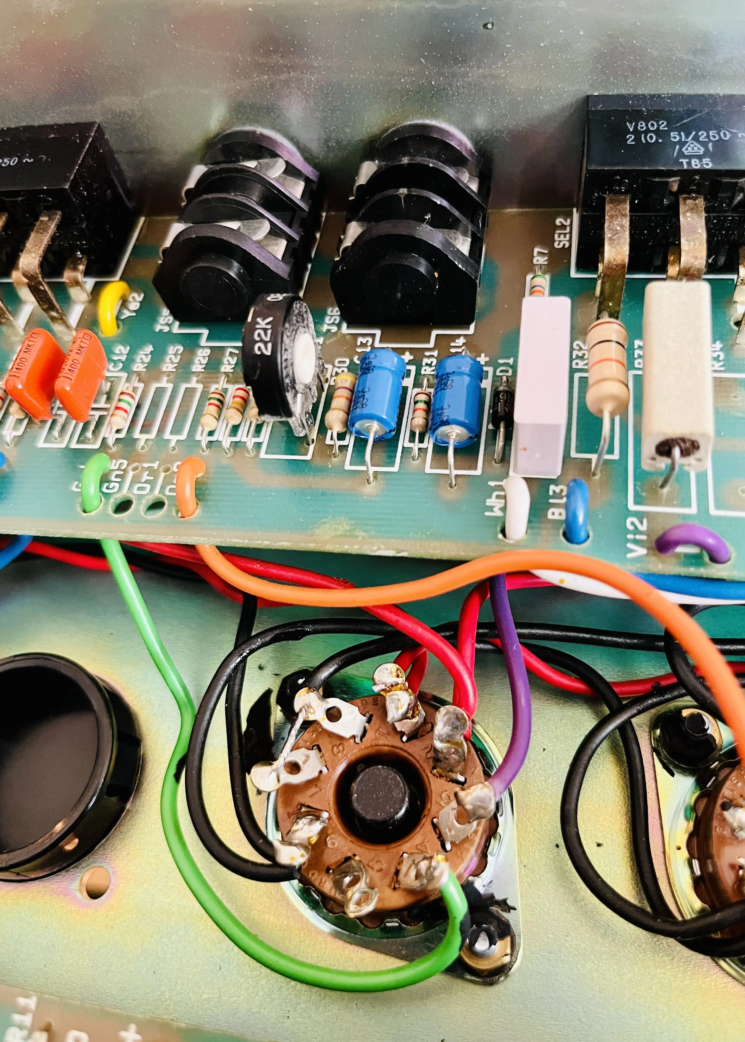 2 of the preamp tubes were NOS RCA blackplate and greyplate 12AX7’s, 1 TAD ECC83CZ selected for the cathode follower, and the power tubes were NOS CBS/Hytron 6CA7’s. The caps were a mix of Vishay, F+T, Sprague, IC, and CE brands. Finding all the correct values takes a number of different brands these days to get right. The Fixed Bias was set at %66 Class AB Plate Dissipation. This particular JCM 900 was the best sounding one I have ever heard.